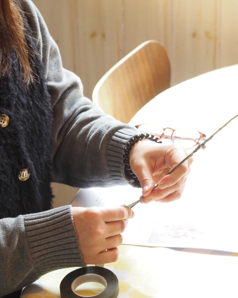 花嫁様のご友人である生徒さん。花嫁様から「ブーケを作ってほしい」と依頼され、ブーケレッスンに参加されました。