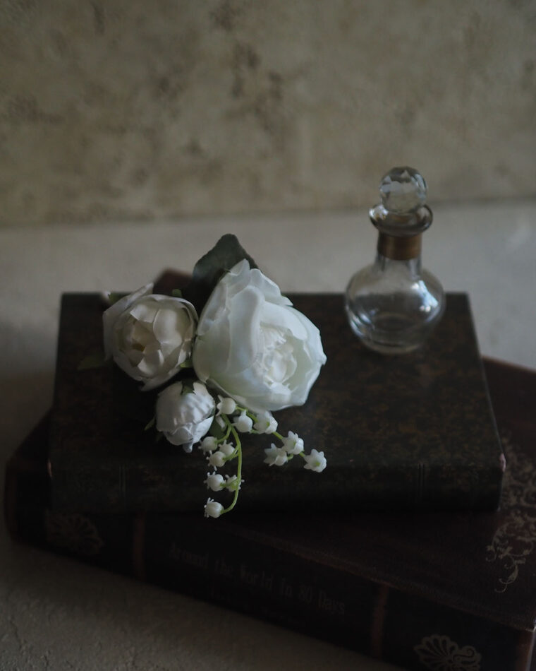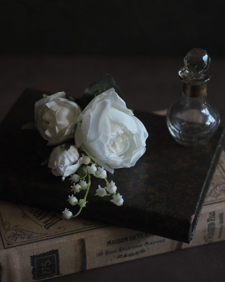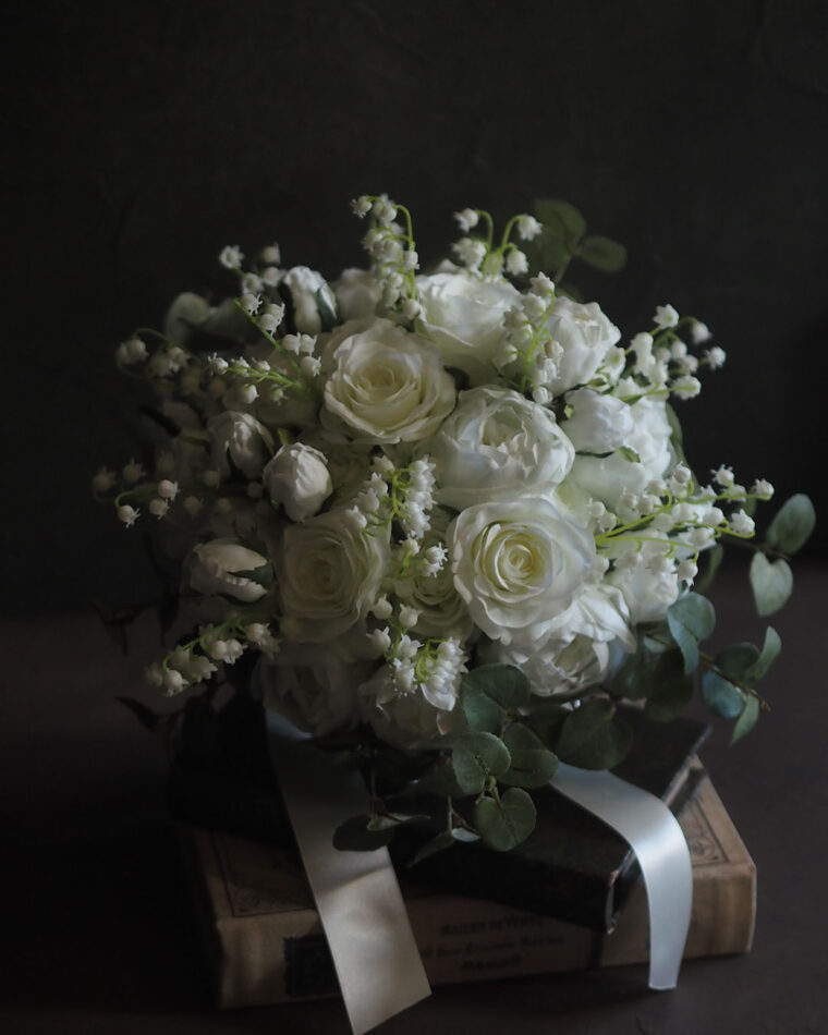 白バラの気品と、すずらんの清らかな香りを思わせるブーケ。