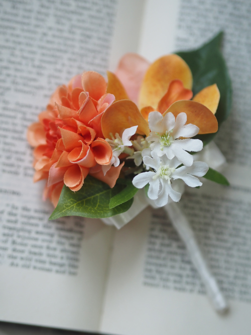 母娘で丁寧に作り上げたブーケとヘッドドレス、ブートニア。